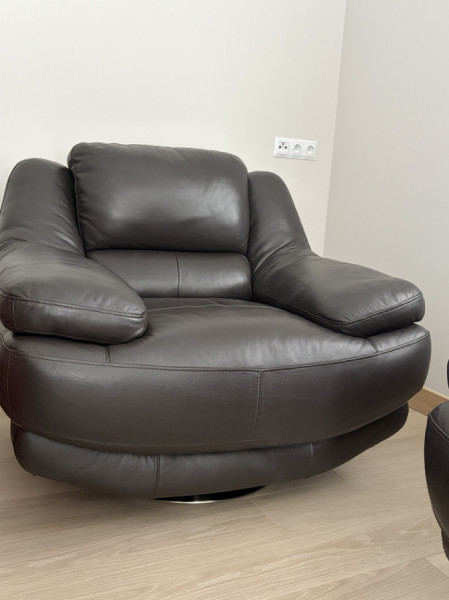 Sprzedam sofę dwuosobową i fotel obrotowy z naturalnej skóry kolor brązowy