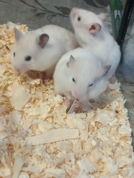 Polecam piękne chomiki rasy syryjskiej młodziutkie różne kolorki czterech chłopczyków urodzone 25 grudnia.Jedzą już karmę.Odbiór tylko osobisty.Cena za jednego chomisia.