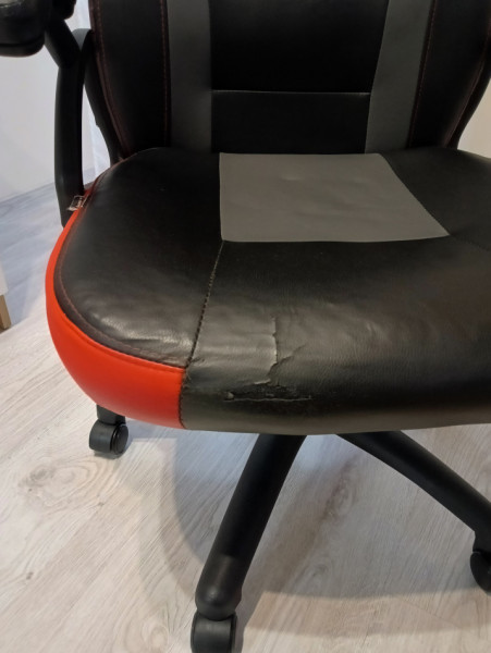 Stan określam na dobry, nie wielkie otwarcie na oparciu oraz łuszcząca się skóra na siedzisku, nie wpływa to na użytkowanie.