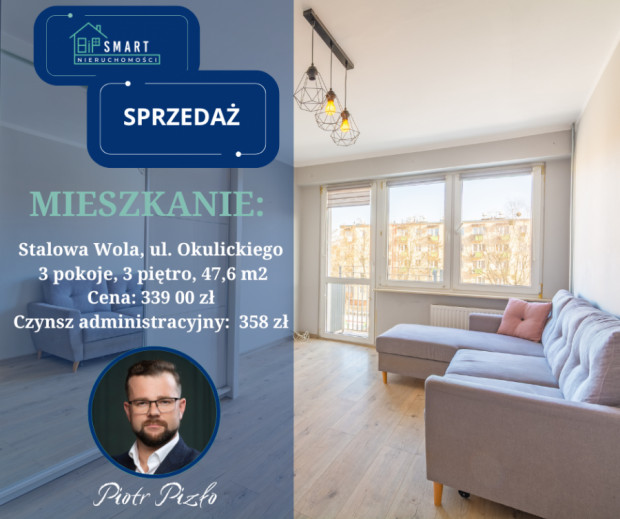 Biuro BiP Smart z przyjemnością prezentuje ofertę sprzedaży zadbanego, funkcjonalnego mieszkania 3-pokojowego z balkonem, położonego na 3. piętrze niskiego bloku przy ul. Okulickiego w Stalowej Woli.