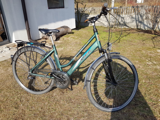 Witam. Posiadam do sprzedania bardzo ładny rower damski Mifa na kołach 28cali. Rozmar ramy to M,rama aluminiowa, porządny napęd shimano deore, bardzo ładny lakier,matowa butelkowa zieleń. Rower bardzo lekki i w bardzo dobrym stanie. Bliższych informacji udzielę telefonicznie. Jakiś czas temu założone nowe siodełko salle royal wartości około 150zł(niewidoczne na zdjęciach)
