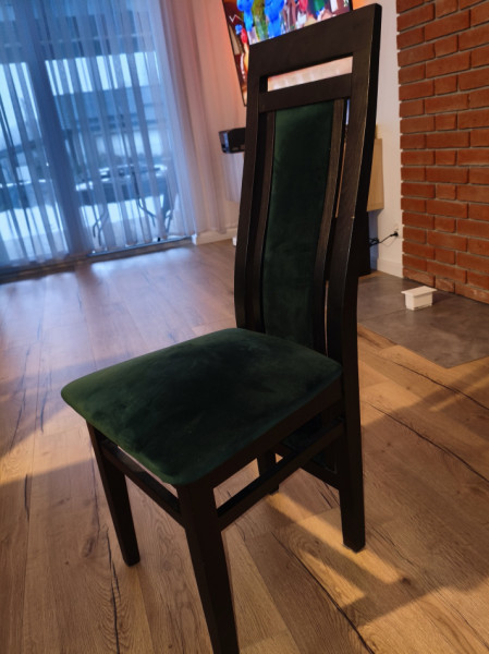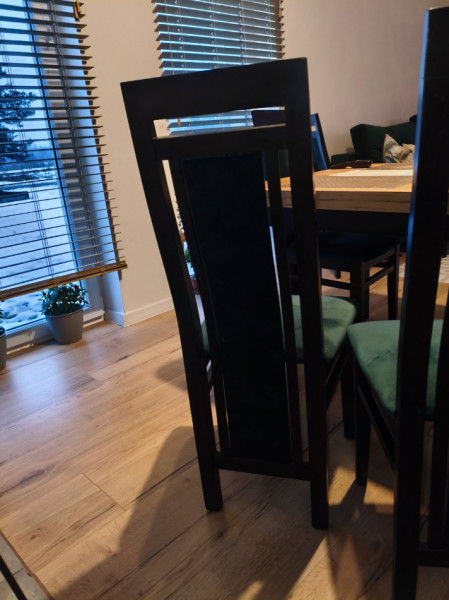 Witam, mam na sprzedaż 8 krzeseł w kolorze butelkowej zieleni. Stan bardzo dobry. Jedno krzesło w stanie dobrym. Cena za szt. 80 zł