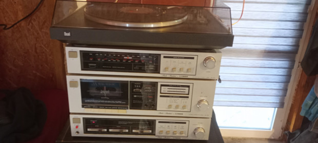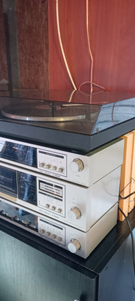 Sprzedam wieżę typu vintage, japońskiej firmy Fisher Studio Standard, wraz z gramofonem niemieckiej firmy Dual oraz dwiema kolumnami Sanyo.