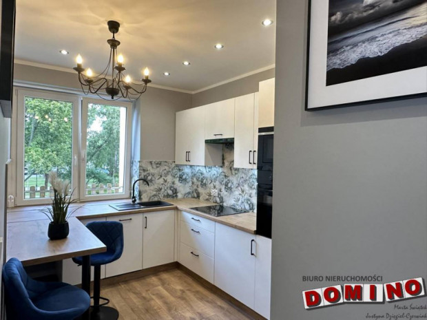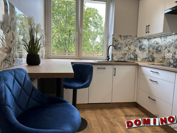 Biuro Nieruchomości DOMINO poleca Państwu do wynajęcia komfortowe, 2-pokojowe mieszkanie po generalnym remoncie, usytuowane na I piętrze w kameralnym bloku z cegły przy ul. Dmowskiego. Nieruchomość wyróżnia się dobrą lokalizacją w centrum miasta, a jednocześnie spokojnym, zielonym otoczeniem. Z okien rozpościera się widok na park, co zapewnia prywatność oraz przyjemną przestrzeń do codziennego życia.