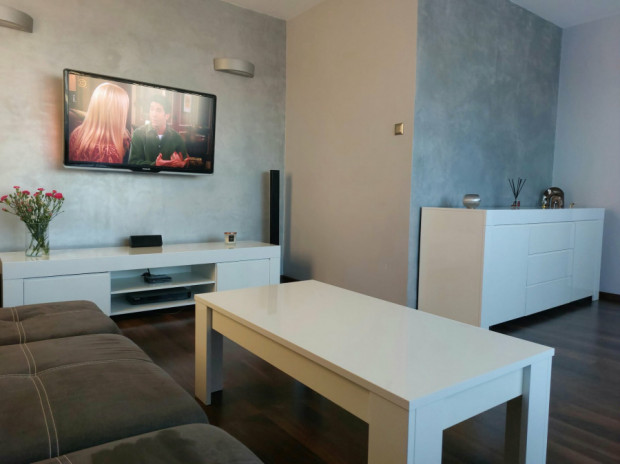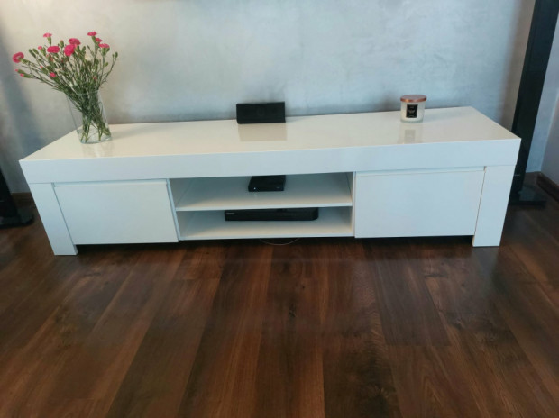 Nowoczesna, biała komoda o minimalistycznym designie. Posiada trzy szuflady oraz dwie zamykane szafki, zapewniając dużo miejsca do przechowywania. Wykonana z wysokiej jakości materiałów, idealnie pasuje do współczesnych wnętrz. W zestawie jest komoda rtv i stolik, cały komplet jest w bardzo dobrym stanie, aktualnie meble są złożone i dobrze zabezpieczone z powodu przeprowadzki, chętnie udzielę więcej informacji sms/tel