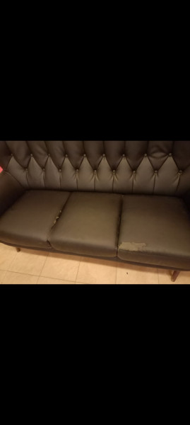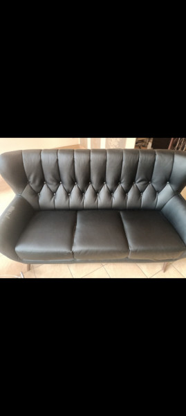Mam do sprzedania kanapę trzyosobową nie rozkładaną na nóżkach drewnianych, kolor czarny z eko skóry,zakupiona w Salonie Agata -meble.Ma uszkodzoną tapicerkę od słońca,po za tym stan bardzo dobry.Wymiary dl.190 cm szer 90cm.Odbior we własnym zakresie.