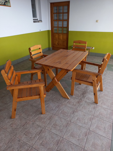 Sprzedam stół i cztery wygodne krzesła solidnie wykonane z drzewa sosnowego .