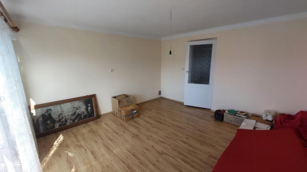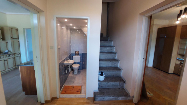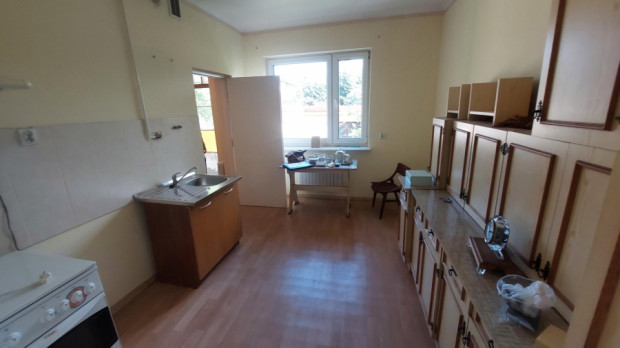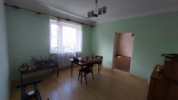 Wewnątrz na parterze 3 pokoje przejściowe (16m2, 17m2, 13m2), kuchnia 12m2, łazienka z wc 3m2, wyjście schodami na poddasze oraz duży strych. Na poddaszu pomieszczenie 3,5m2 przeznaczone na łazienkę oraz duży pokój 17m2. Łącznie 4 pokoje. Wysokość pomieszczeń na parterze 2,8m.