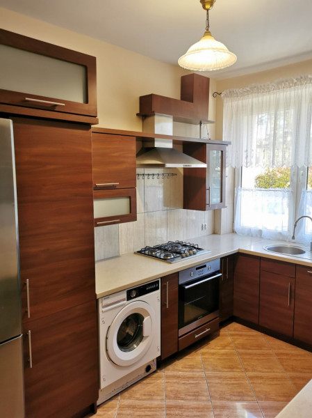 Kuchnia w zabudowie, w jednym z pokoi wnękowa szafa przesuwna z lustrem na całą szerokość ściany o dużej pojemności „magazynowania”.