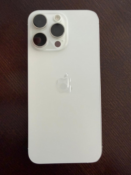 Używany telefon iPhone 15 Pro Max z wbudowaną pamięcią 256 GB. Stan bardzo dobry, bez rys. Kupiony w Stanach Zjednoczonych. Karta esim. Kondycja baterii 85%. Kolor biały tytanowy.
