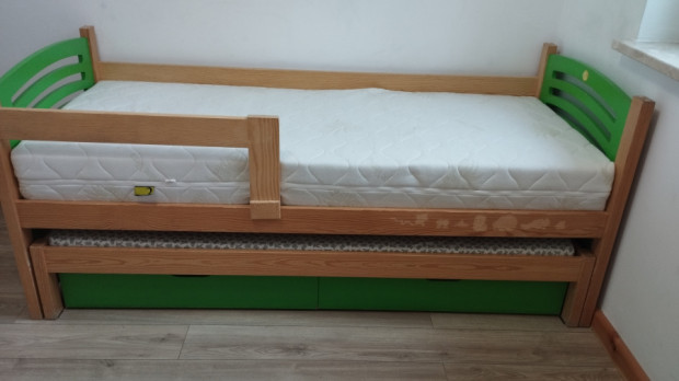 Łóżko podwójne z szufladkami i materacami,widoczne ślady użytkowania.Cena do negocjacji 350 zł