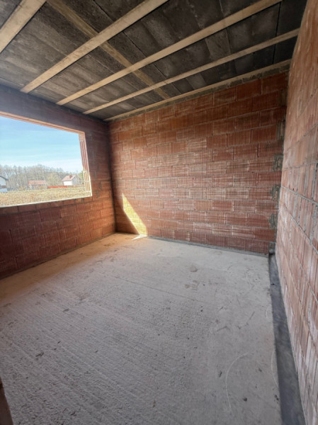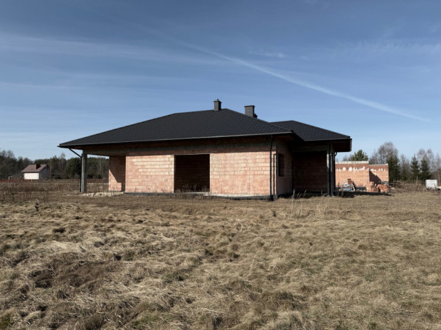 Dom sprzedawany w stanie surowym otwartym o powierzchni użytkowej 133 m2 na działce 9,68 ary. Budynek niepodpiwniczony.