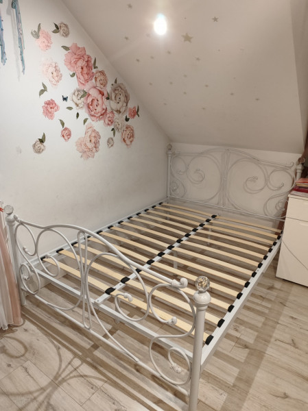 Solidna metalowa rama łóżka w stylu vintage. Posiada piękne, ażurowe zdobienia, które nadają jej eleganckiego charakteru. Rama jest w dobrym stanie, może posłużyć jeszcze wiele lat. Doskonała propozycja dla osób ceniących sobie unikatowe i stylowe meble do sypialni.