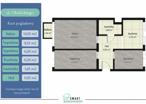 Mieszkanie 3-pokojowe, 47,5 m² – ul. Gen. L. Okulickiego