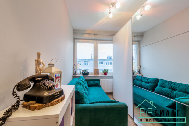 Lokal sprzedawany z wyposażeniem. Mieszkanie jest dwustronne, co zapewnia bardzo dobrą cyrkulację powietrza i doświetlenie. Okna PCV. Do lokalu przynależy piwnica o powierzchni 7,20 m², stanowiąca dodatkowe miejsce do przechowywania. Położenie na ostatnim piętrze gwarantuje ciszę oraz brak uciążliwości związanych z sąsiadami nad mieszkaniem.