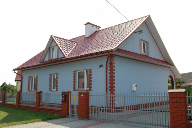 - dach docieplony wełną mineralną, kryty blachodachówką,