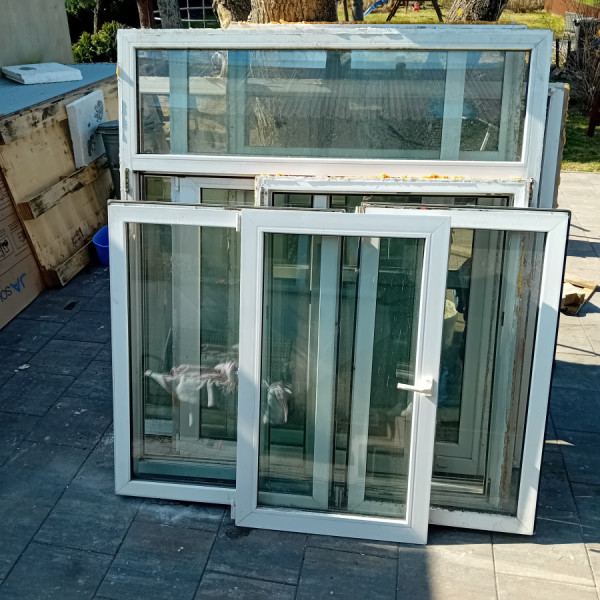 Sprzedam zestaw 6 używanych okien PCV. Wszystkie okna (poza jednym) posiadają stałe górne naświetle (Fix) o wysokości 500 mm. Wyposażone w pakiety dwuszybowe 4/16/4 o współczynniku U=1,1.