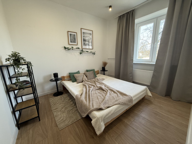 Mieszkanie jest po generalnym remoncie, wykończone w nowoczesnym standardzie i wyposażone w nowe sprzęty RTV/AGD.