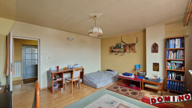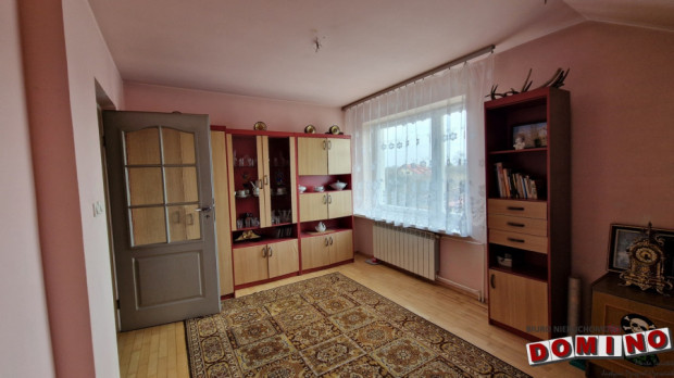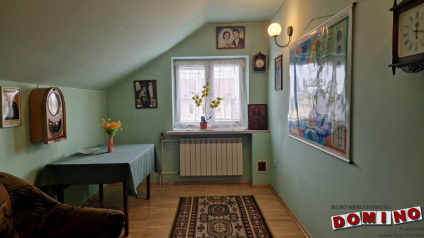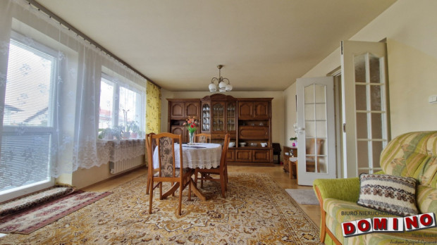 Dom z potencjałem. Dom został zaprojektowany w ciekawy i bardzo funkcjonalny sposób. Jest w całości podpiwniczony, co daje ogromną przestrzeń użytkową, której często brakuje w nowych domach lub mieszkaniach w bloku. W piwnicy znajdują się m.in.: pomieszczenie będące siłownią, pokój w którym jest obecnie stół do ping-ponga, kotłownia, spiżarnia, drewutnia czyli duża ilość przestrzeni do przechowywania. Na parterze znajduje się wiatrołap z zabudowaną szafą, przestronny salon z jadalnią oraz klimatycznym kominkiem, (z wyjściem na balkon) oraz kuchnia, które tworzą komfortową strefę dzienną dla całej rodziny. Pozostałe pokoje rozmieszczone są na półpiętrach, co daje bardzo ciekawy układ wnętrza i poczucie przestrzeni. W domu znajdują się łącznie: 6 pokoi, 2 łazienki, osobna toaleta. Na piętrzę istnieje możliwość wykonania dodatkowej kuchni (wszystkie instalacje są już przygotowane). Dzięki temu nieruchomość świetnie sprawdzi się również jako dom dla dwóch rodzin. W większości pokoi znajdują się wyjścia na balkony, co dodatkowo podnosi komfort codziennego użytkowania. Z ostatniego piętra jest wyjście na strych.