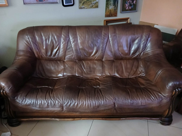 Sprzedam skórzany komplet wypoczynkowy (dwie kanapy-2os. i 3os.)