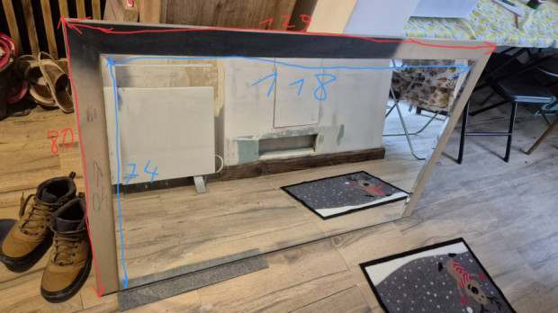 Sprzedam lustro na płycie meblowej (do oklejenia lub pomalowania). Widoczne ślady użytkowania, drobne rysy itp.