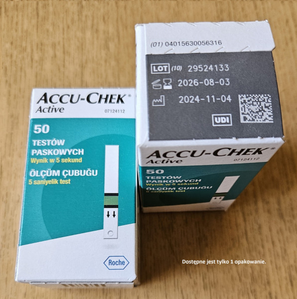 Nowe opakowanie z 50 sztukami pasków z terminem ważności do 03.08.2026.