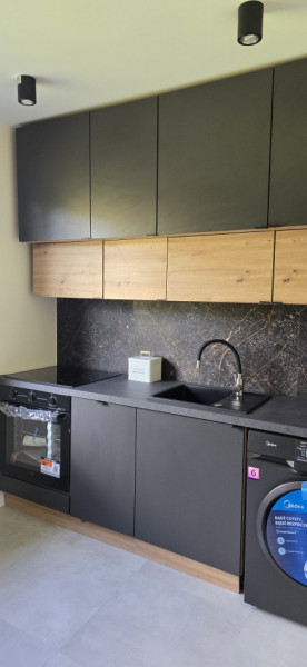 Kuchnia wyposażona w nowy sprzęt zmywarka, płyta indukcyjna, piekarnik, pralka)