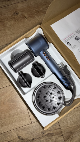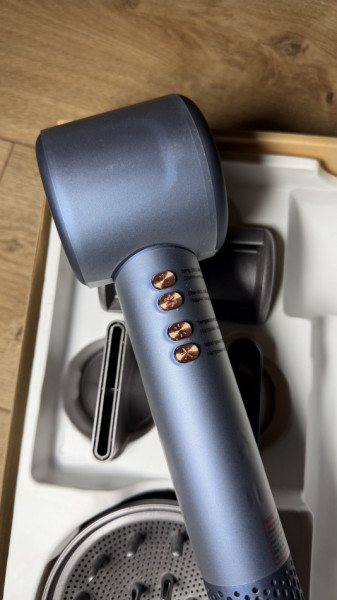 • Magnetyczne końcówki: W zestawie aż 5 nasadek (w tym dyfuzor, koncentrator i końcówka do wygładzania), które montuje się błyskawicznie na magnes.
