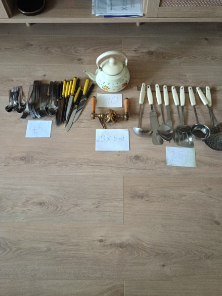 Sprzedam komplet sztućców na 12 osób,klamki szt 5 ,nowe przybory kuchenne,używany czjnik