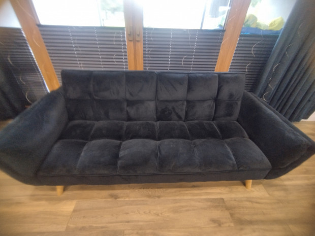Czarna welurowa sofa - rozkładana