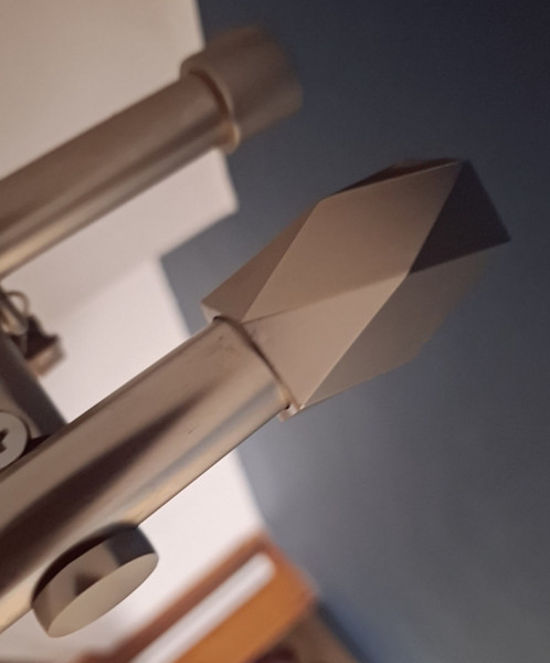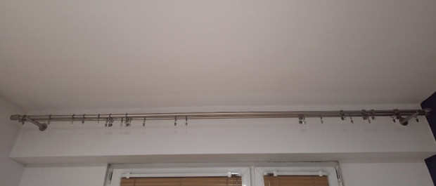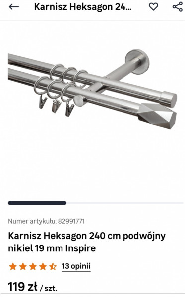 Z uwagi na zmianę karnisza na szynę sprzedam ten karnisz srebrny metaliczny dwudrążkowy o dł 240 cm z ładnymi heksagonowymi zakończeniami