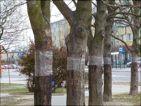 Na kasztanach w mieście jak co roku pojawiły się foliowe opaski leczące. Jak zwykle winę za choroby drzew to ponosi szkodnik zwany wdzięcznie szrotówek kasztanowniczek.