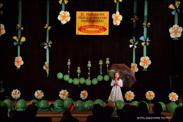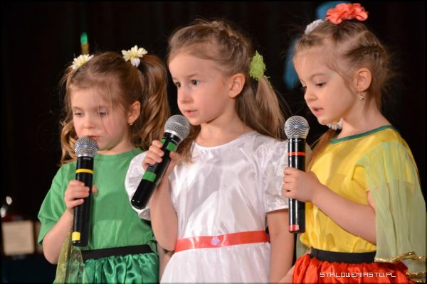 Dla większości przedszkolaków dzisiejszy występ był pierwszym, kiedy to śpiewały z mikrofonem w dłoni na dużej scenie oraz przed tak dużą publicznością. Wszystkie maluchy były bardzo dzielne, wykazały się nie lada zdolnościami wokalnymi i estradowymi. Od strony muzycznej dzieci przygotowywali nauczycieli i rodzice. Przedszkolaki wykonywały utwory z repertuaru piosenki przedszkolnej z podkładem muzycznym.