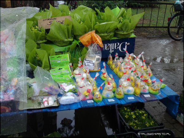Deszcz jednak nie był przeszkodą aby wybrać się na świąteczne zakupy. Na targu można było spotkać wielu mieszkańców, którzy kupowali przeróżne wielkanocne produkty, a można było tu dostać niemal wszystko.