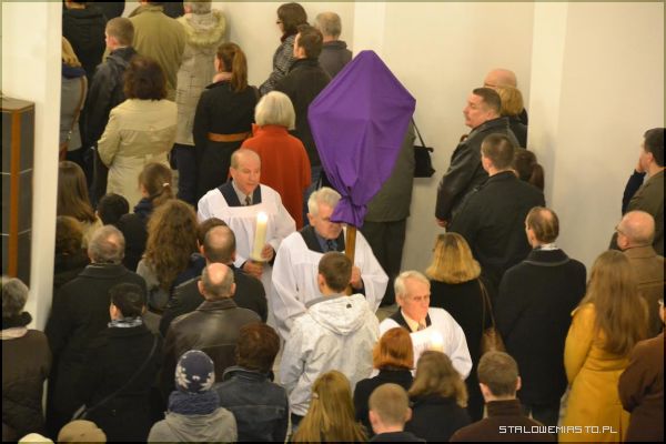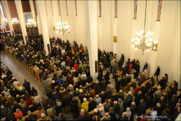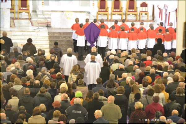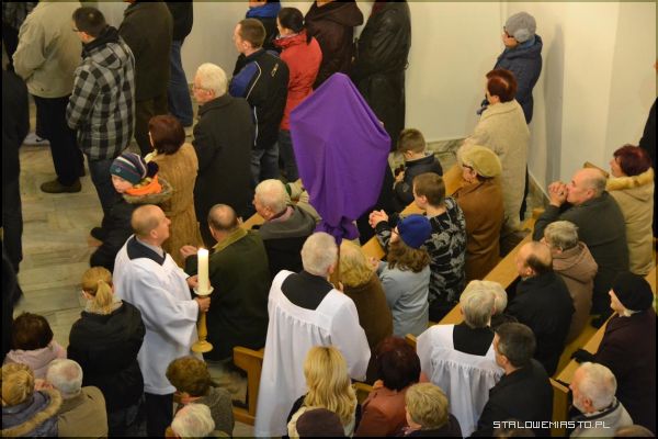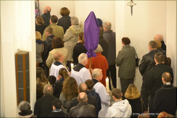 Wieczorem, o godz. 18:00 w Bazylice Konkatedralnej odprawiono Liturgię Męki Pańskiej, po której nastąpiło złożenie Ciała Chrystusa do Grobu. Centralną częścią wielkopiątkowego nabożeństwa była adoracja krzyża. Od dwóch tygodni we wszystkich kościołach Stalowej Woli, podobnie jak w innych w Polsce, wszystkie krzyże były zasłonięte płótnem.