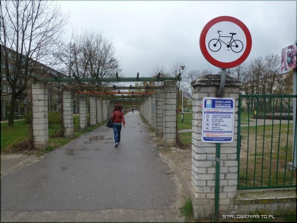 Przy wejściu z obu stron umieszczone są znaki: „zakaz wjazdu dla rowerów”. Jest również przytwierdzony regulamin korzystania z placu zabaw, którego zarządcą jest Administracja Osiedlowa NR 2. Czytamy w nim: