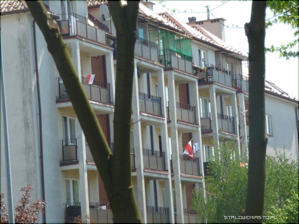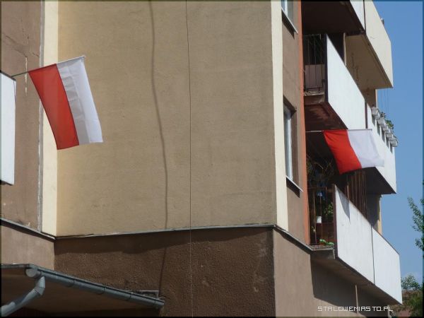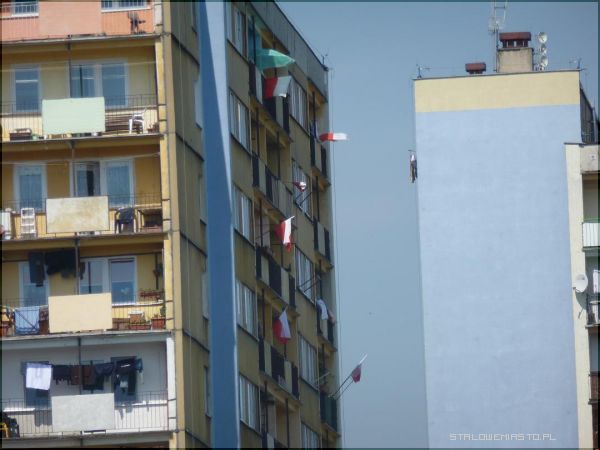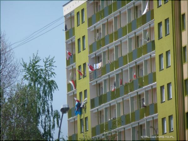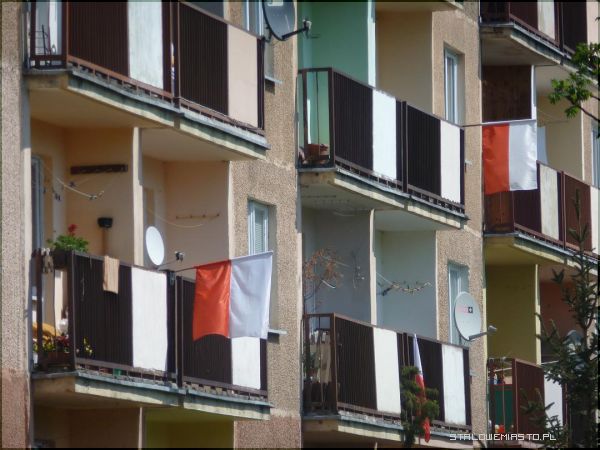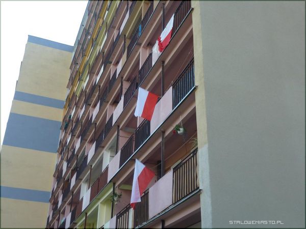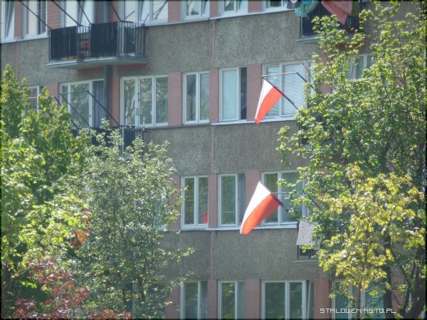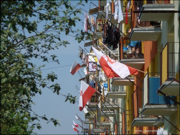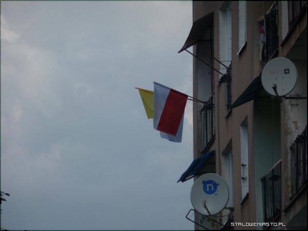 Najgorsze to te balkony gdzie obok flagi narodowej wisi pranie no i flaga biało-żółta papieska. Biało-niebieska ("maryjna") to jeszcze rozumiem ale papieska całkiem nie pasuje.