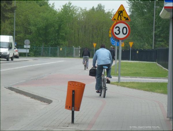 Najlepszy jest ten kosz na smieci na pierwszym zdjeciu. Kosz na samym środku ścieżki rowerowej!. To jest przykład jak głupio i beznadziejnie sa projektowane ścieżki rowerowe w Stalowej Woli. Robione są na odwal się,do tego wysokie krawęzniki i "znikające" nagle ścieżkirowerowe.