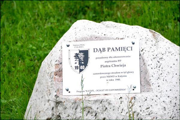17.09.2010 roku w Stalowej Woli został posadzony Dąb Pamięci celem uhonorowania mjr Bronisława Jakubowskiego, posterunkowego PP Bronisława Rusickiego, Aspiranta PP Piotra Chwieja, którzy zostali zamordowani strzałem w tył głowy przez NKWD w Katyniu w 1940 roku.