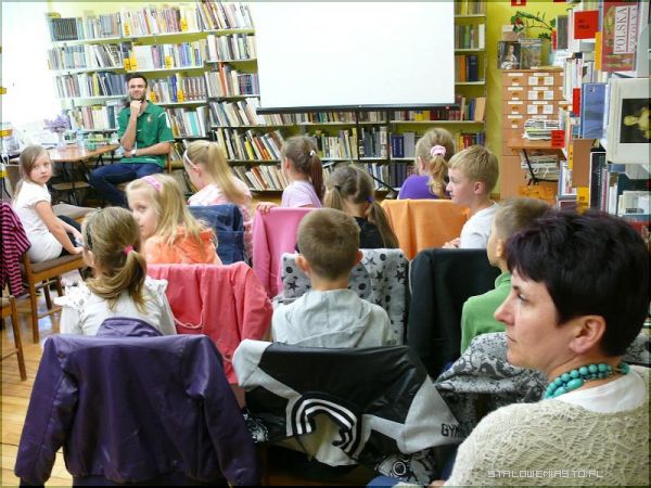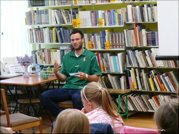 - Akcje w jakie włącza się nasza biblioteka w ramach ogólnopolskiego Tygodnia Bibliotek, mają na celu zachęcenie dzieci do korzystania z niej. Czytanie jest niezwykle ważne dla dziecka, wtedy kształtuje się jego wyobraźnia. Staramy się na wszystkie możliwe sposoby brać udział w różnych wydarzeniach, by poprzez zabawę, atrakcje zachęcać najmłodszych do odwiedzania biblioteki, korzystania z jej zbiorów. Najważniejsze by one dobrze się tu czuły- poinformowała nas pracownica oddziału dla dzieci w Filii nr 4, Maria Chodukowska.Piłkarz czytał dzieciom książkę pt. „Koszmarny Karolek strzela gola” oraz poprowadził pogadankę na temat ruchu na świeżym powietrzu, fair - play w sporcie. Uczniowie mogli zadawać mu pytania, a tych było pod dostatkiem. Każdy chciał dowiedzieć się jak najwięcej o gościu, padały m.in. takie pytania jak: „ Jak długo pan gra w piłkę?”, „ Jaką drużynę pan lubi najbardziej?”, „ Który piłkarz jest pana idolem” itp. Na początku dzieci były onieśmielone obecnością takiej gwiazdy, jednak po chwili się rozkręciły i pytały też o życie prywatne, zainteresowania, podróże. Piłkarz starał się opowiedzieć o sobie jak najwięcej, odpowiadał na wszystkie pytania i zachęcał młodych słuchaczy do uprawiania sportu. Starał się być dla dzieciaków partnerem w rozmowie. Jak się okazało wielu z uczniów interesuje się piłką nożną, niektórzy nawet uczęszczają na treningi, marząc by w przyszłości być drugim Lewandowskim.