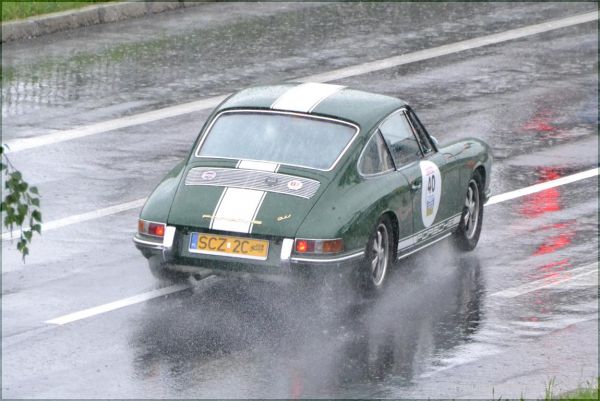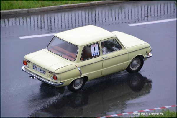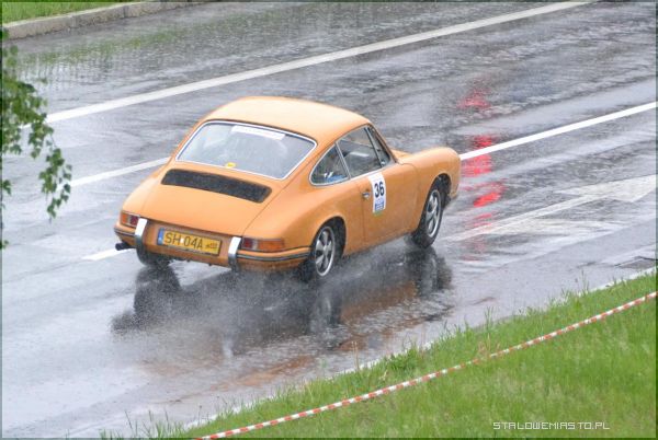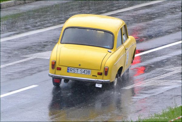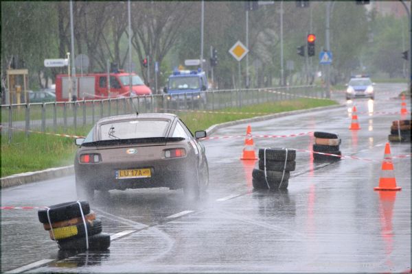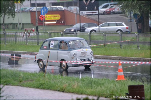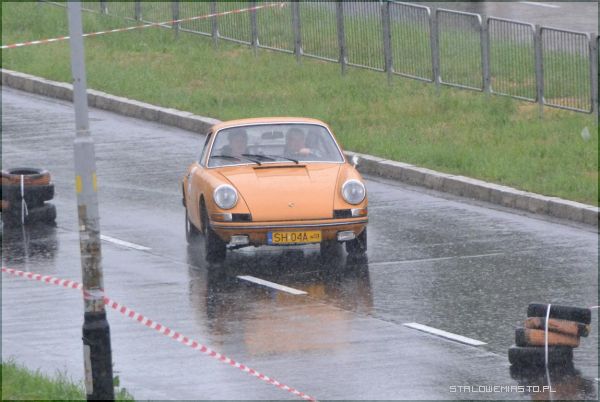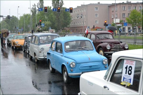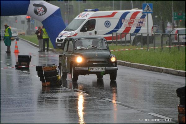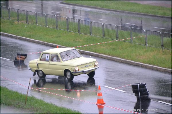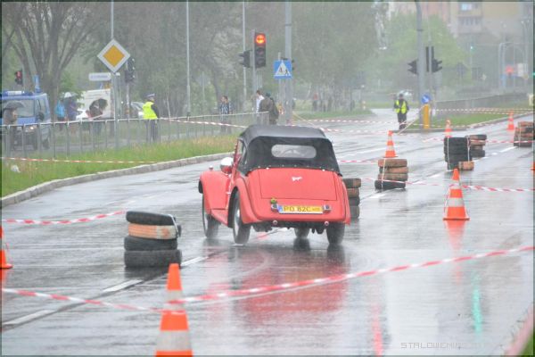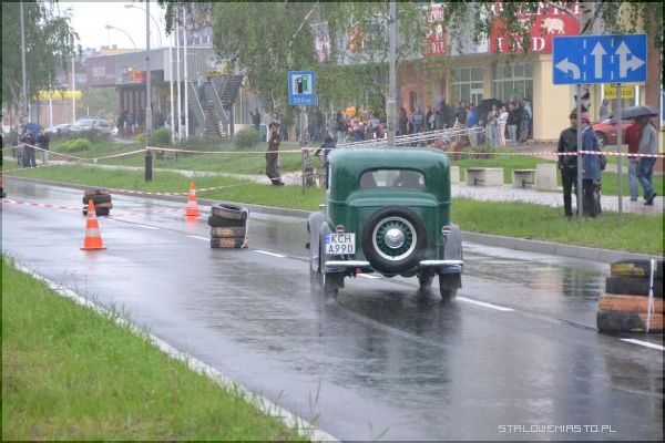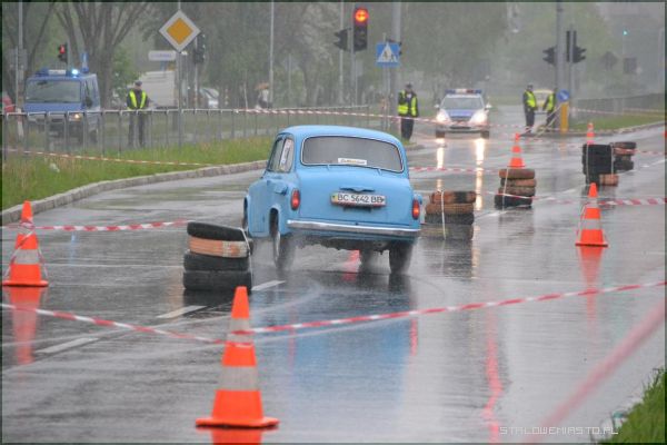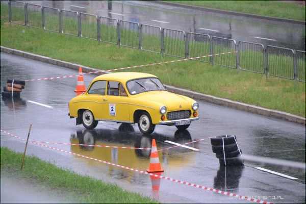 W strugach deszczu uczestnicy I Rundy Eliminacji Mistrzostw Polski Pojazdów Zabytkowych wykonywali ostatnie zadanie, jakim był przejazd na czas po torze, który został przygotowany na Al. Jana Pawła II.