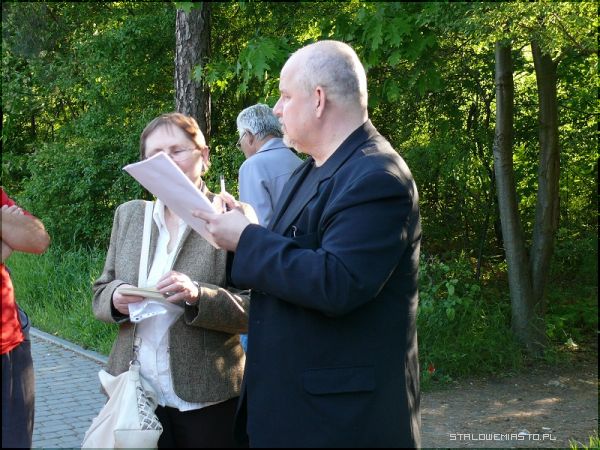 - zwiedzamy przedwojenną Stalową Wolę, zaczynamy od dyrekcji naczelnej HSW S.A., kolejno kierujemy się na dzielnicę robotniczą, następnie szkoła nr 1, ul. Hutnicza, Mickiewicza i wjeżdzamy na Plac Wolności, dalej dzielnicą dyrektorką i urzędniczą pod Hotel Hutnik, gdzie zrobimy sobie krótki spacerek. Wycieczkę zorganizowaliśmy bo jest duże zainteresowanie historią miasta. Wbrew pozorom Stalową Wolę zamieszkują w główniej mierze ci, którzy nie mieszkają tu od czasów przedwojennych, przyjechali znacznie później, więc nie znają historii miasta. To zachęta do korzystania z innych naszych propozycji- poniformował nas pracownik Muzeum Regionalnego w Stalowej Woli, Marek Wiatrowicz.Przewodnikami historycznej wyprawy byli pracownicy stalowowolskiego muzeum- Anna Garbacz i Marek Wiatrowicz, którzy szczegółowo przybliżali podróżnikom historię dwiedzanych miejsc. Wyprawa zakończyła się około godz. 20.00 pod miejskim muzeum, a zainteresowani mogli uczestniczyć w dalszych atrakcjach przygotowanych przez Muzeum Regionalne w Stalowej Woli.