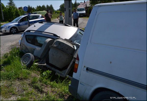 Jeden pas ruchu został zablokowany. Na miejsce przybyła straż pożarna, policja i karetka pogotowia. Poszkodowanym udzielono pomocy medycznej i zabrano do szpitala w Stalowej Woli. Kierowca dostawczaka uderzył głową w szybę i uskarżał się na bóle głowy. Oba samochody mają wybite szyby i liczne wgniecenia.