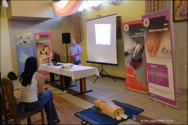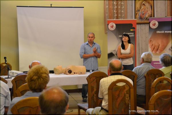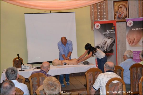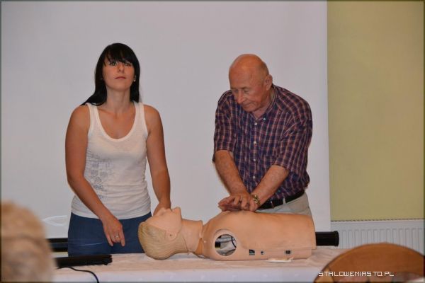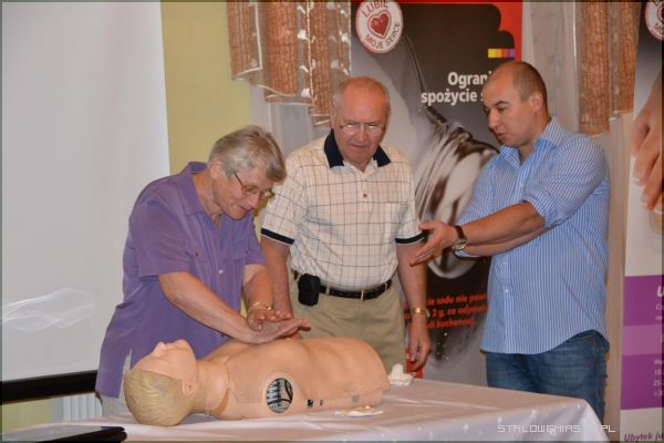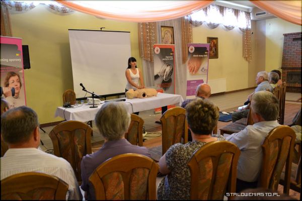 - Dzisiejsze spotkanie jest to spotkanie z udziałem ratowników medycznych. Ma ono na celu wprowadzenie teoretyczne pacjentów w takie podstawowe informacje z zakresu ratownictwa medycznego, głównie skupiając uwagę na przypadkach zawałowych, kardiologicznych, jak również pozyskanie praktycznych umiejętności na skutek ćwiczeń na fantomie– mówiła Joanna Kruczak.To co było podkreślane wielokrotnie to to, by nie przechodzić obojętnie obok kogoś kto leży na ulicy. Jeżeli ktoś nie wykazuje tzw. oznak życia na pierwszy rzut oka, to powinniśmy zareagować, podejść do takiej osoby i zapytać ją głośno o to co się stało i czy nas słyszy. Następnie należy lekko potrząsnąć poszkodowanym za ramiona. Jeśli się okaże, że nadal nie reaguje, trzeba poprosić o pomoc drugą osobę, o wezwanie pogotowia, pod warunkiem oczywiście, że taka osoba się znajdzie w naszym zasięgu.