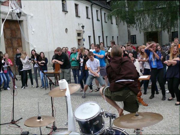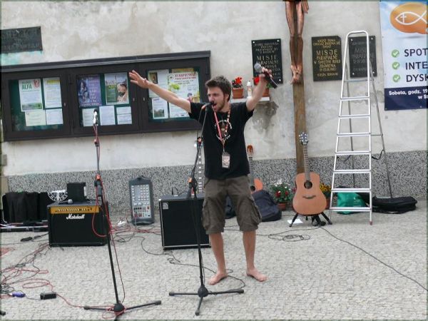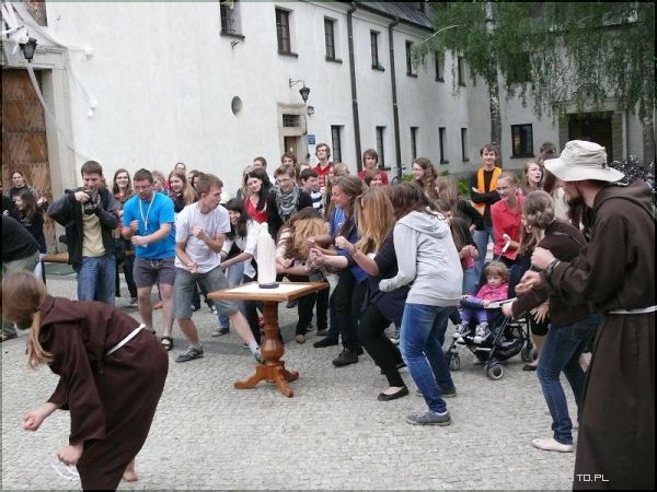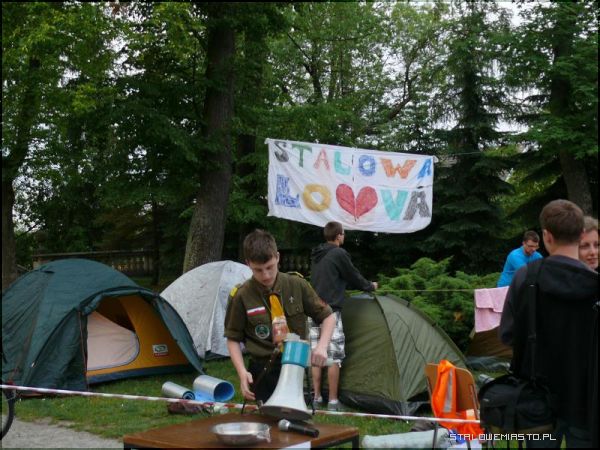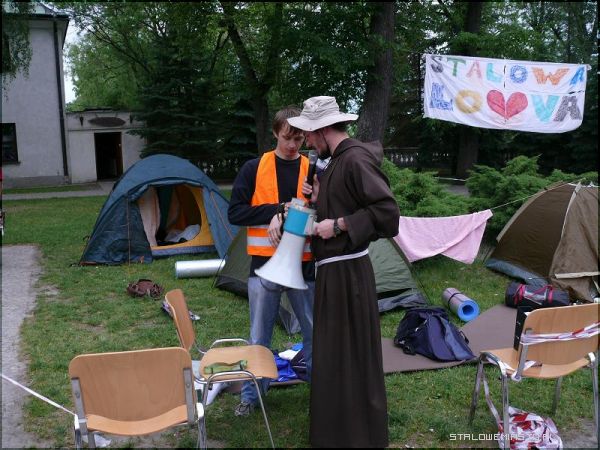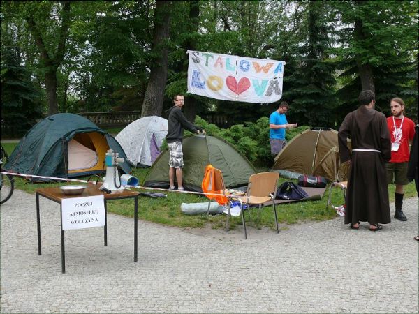 - Chcieliśmy w ten sposób zaprosić młodzież do wyjazdu lipcowego na Spotkanie Młodych w Wołczynie. Pokazujemy tym, którzy nie wiedzą jak wygląda taka wyprawa, co ich może czekać na miejscu. To oczywiście namiastka tego, co będzie w Wołczynie. Sam wyjazd trwa 5 dni, jedni traktują go jako rekolekcje, drudzy jako zwykłe spotkanie z przyjaciółmi, a jeszcze inni jako okazję do spowiedzi. Sam Wołcz też ma swoje tematykę, każdego roku jest ona inna, a pod dany temat podporządkowywane są koncerty, spotkania w grupach i cały charakter wyjazdu. Koszt tego wyjazdu to 130zł, 80 zł za przejazd(w obie strony)oraz 50zł wpłacane na miejscu- w tym uczestnicy mają zapewniony jeden posiłek ciepły, bułki na śniadanie oraz gorącą herbatę rano i wieczorem. Co roku stanowimy jedną z liczniejszych grup wyjazdowych- poinformował nas brat zakonny z Klasztoru Braci Mniejszych Kapucynów w Stalowej Woli, Rafał Kotowski.Wyjazd do Wołczyna to już tradycja, organizowany jest przeszło od 15 lat i co roku cieszy się dużym zainteresowaniem. Podczas dzisiejszej majówki mogliśmy zobaczyć jak wygląda cały dzień pobytu w Wołczynie, od pobudki, poprzez poranną rozgrzewkę, posiłki i wiele innych atrakcji.