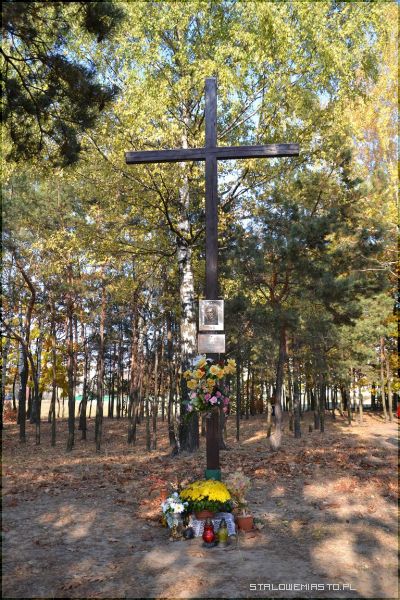 Na krzyżu znajduje się napis: "Plac poświęcony pod budowę kościoła pod wezwaniem Błogosławionego Księdza Jerzego Popiełuszki, Stalowa Wola, 27.02.2009". Kilka lat temu bowiem Kuria Sandomierska zwróciła się do miasta z prośbą o przeznaczenie terenu górki na osiedlu Młodynie pod budowę świątyni. Żadne jednak decyzje w tej sprawie nie zapadły. Już 26.02.2009 roku czyli dzień przed procesją w lokalnej prasie pojawiły się informacje, że na działce mają zostać wybudowane bloki mieszkalne. Miasto zaprzeczyło...