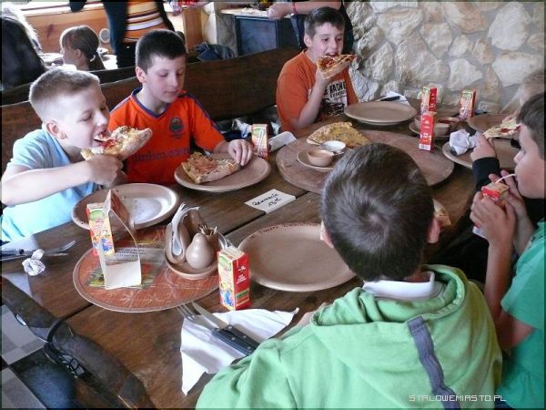 Z kolei uczniowie klasy III wybrali się wraz ze swoją wychowawczynią na pizzę do jednej z lokalnych pizzerii. Gdy tylko nakryto do stołu, klasa z niezwykłym apetytem sięgała po kolejne kawałki włoskiego przysmaku. Oprócz pizzy każdy uczeń dostał również napój. Najedzeni i zadowoleni powrócili do szkoły.