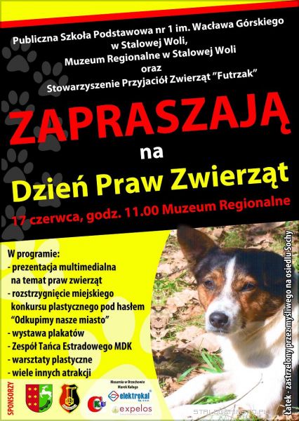 17 czerwca w Muzeum Regionalnym w Stalowej Woli odbędzie się Miejski Dzień Praw Zwierząt. Organizatorami tego przedsięwzięcia jest Szkoła Podstawowa nr 1 w Stalowej Woli wspólnie z Muzeum Regionalnym oraz Stowarzyszenie Przyjaciół Zwierząt „Futrzak”. Tego dnia na mieszkańców powiatu stalowowolskiego będzie czekało wiele atrakcji.