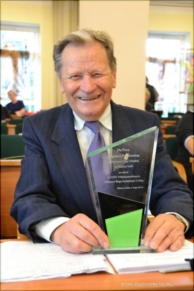 Kiedy zaczął Pan biegać? - Zacząłem biegać mając ok. 40 lat, czyli dokładnie 38 lat temu rozpocząłem biegać- śmieje się radny-. W szkole byłem bardzo, bardzo słabiutki z WF-u. Tam stale były skoki przez konia z łękami, kozła, skrzynię itd. Wówczas nie propagowało się biegów. A ja w pewnym momencie zacząłem truchtać dla zdrowia – mówi Zbigniew Paszkiewicz. Co było takim impulsem, bodźcem do tego? - Takim bodźcem była po prostu potrzeba ruchu, a wtedy zaczęto też w Polsce biegać. Słynny Hofer rozpoczął akcję „Bieganie po zdrowie”. Nawet wnuk się kiedyś pytał, bo biegłem razem z nim, i pytał mnie: „dziadek gdzie to zdrowie, gdzie to zdrowie?” Bo biegniemy po zdrowie- powiedziałem. Jak często Pan biega? - Teraz w ogóle nie biegam bo jestem po operacji. 3 maja biegłem podczas XXIV Międzynarodowego Ulicznego Biegu Konstytucji 3 Maja w Stalowej Woli, a tak normalnie to 2-3 razy w tygodniu. Przeciętnie dystans wynosi 10 kilometrów. Kiedy będzie można znowu Pana zobaczyć w „biegu”? - Następy bieg w jakim wezmę udział to XXII Bieg Powstania Warszawskiego z 31 lipca na 1 sierpnia, na przed dzień wybuchem powstania listopadowego. To będzie wspaniały bieg dla uczczenia powstańców warszawskich. W zeszłym roku biegłem, była to wspaniała impreza i chodzi o to, żeby o tych młodych ludziach, którzy polegli w powstaniu warszawskim pamiętać. Czy będzie się Pan starał namówić innych radnych do tego, by wzięli udział w kolejnych biegach, np. 11 listopada podczas Ulicznego Biegu Niepodległości? Radny z uśmiechem na twarzy przyznaje, że to bardzo trudne zadanie namówić innych radnych do biegów. A szkoda, bo byłby to dobry przykład dla lokalnej społeczności.Gratulujemy otrzymania statuetki, życzymy zdrowia i kolejnych sportowych sukcesów.