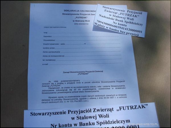 Podczas dzisiejszego Miejskiego Dnia Praw Zwierząt rozdawane były deklaracje członkowskie Stowarzyszenia Przyjaciół Zwierząt „Futrzak”, które chętnie przyjmie nowych i zdecydowanych pomagać czworonogom członków.
